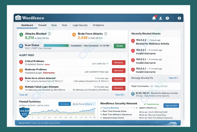 Wordfence es uno de los plugins más completos y conocidos del ecosistema WordPress. Su gran ventaja es que te muestra lo que está pasando en tu web, no solo bloquea en silencio.