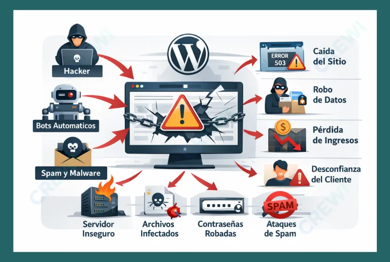 Y no, no hablamos solo del típico “hacker con capucha”. En el día a día, los verdaderos problemas vienen de bots automáticos, intentos de fuerza bruta, spam masivo, plugins desactualizados y accesos indebidos.